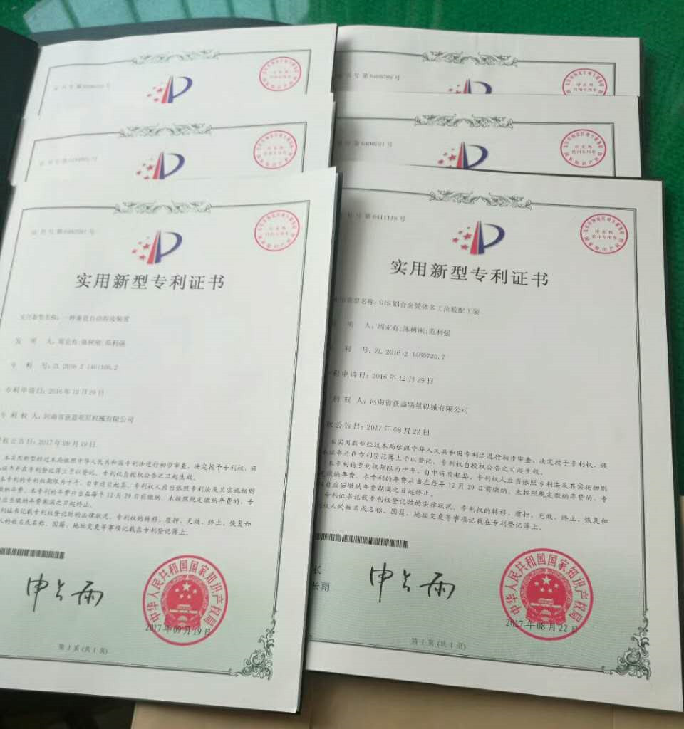 ? ? ?**近,我公司榮獲六項(xiàng)實(shí)用新型專利證書: